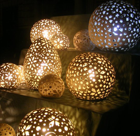 Da circa due anni sto lavorando per creare oggetti d’uso e complementi d’arredo in ceramica, le cui forme e colori soddisfino la mia necessità di semplicità. Amo vedere le idee trasformarsi in realtà attraverso il lavoro delle mani, pertanto, dopo un rapido schizzo su un foglio di carta, mi metto subito al tornio per vedere cosa può nascere. Passo poi al colore... azzurro, bordeaux e verde sono stati i primi tre colori che ho provato a realizzare miscelando terra bianca ed ossidi metallici naturali. Le tinte ottenute sono tenui e delicate, talvolta gli oggetti vengono lasciati monocromi mentre altre volte vengono decorati graffiando la superficie colorata con uno strumento affilato, per fare emergere il colore della terra sottostante. Per chiudere il cerchio entra in gioco il forno che con le sue temperature elevate permette di fissare nel tempo il lavoro svolto. Tazzine, bicchieri, piatti e ciotole sono i principali oggetti d’uso che propongo, mentre les boulles lumiere, le lampade ed i vasi sono oggetti d’arredo che troverete al mio stand, il tutto accompagnato da un allegro gruppetto di animaletti portafortuna in terracotta. |